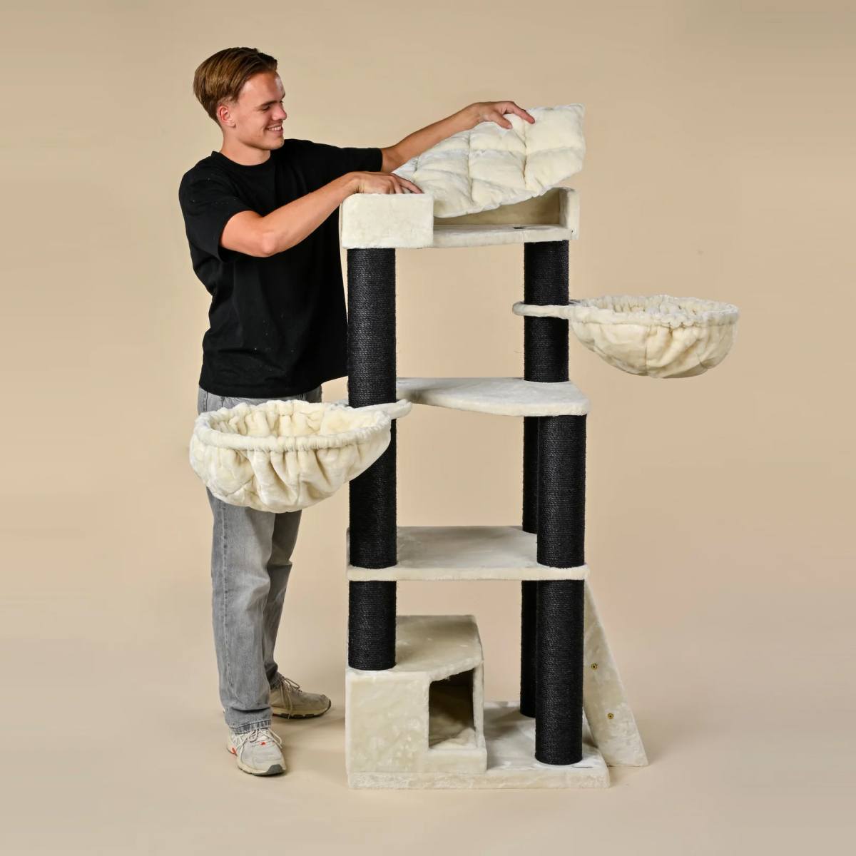 Tai aukštos kokybės, dizaineriška ir itin stabili kačių draskyklė, sukurta didelėms katėms ir aktyviam naudojimui. Ji suteikia daugybę draskymo, poilsio ir žaidimų galimybių, padedančių palaikyti sveikus nagus, stiprius sąnarius ir gerą katės savijautą.