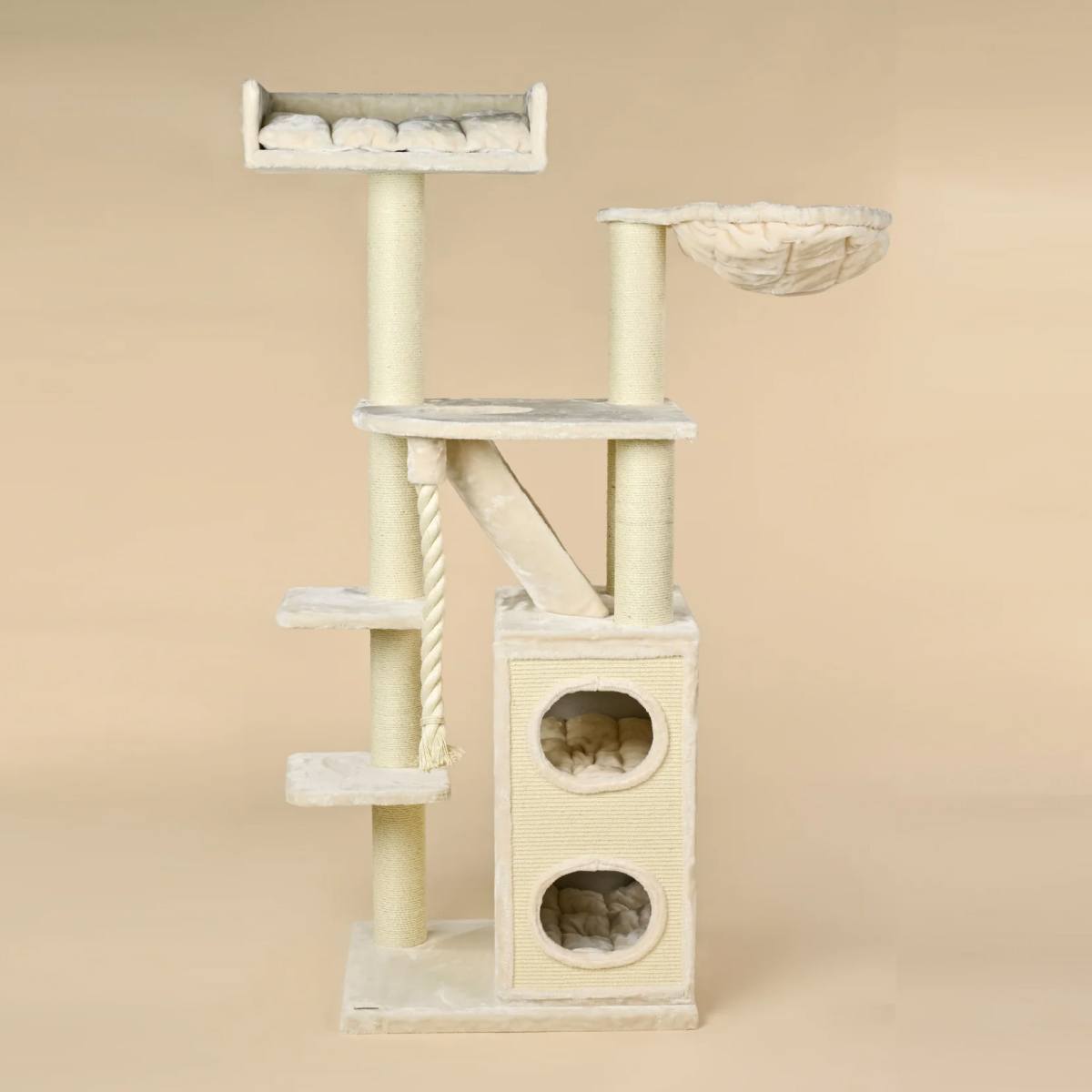 Kačių draskyklė – medis HRH Pets Penthouse – tai itin tvirtas, stabilus ir aukštas kačių medis, sukurtas didelėms ir aktyvioms katėms. 12 cm storio sizalio stulpai, masyvi konstrukcija ir didelė draskymo statinė iš natūralaus sizalio paverčia šią draskyklę tikru kačių rojumi.