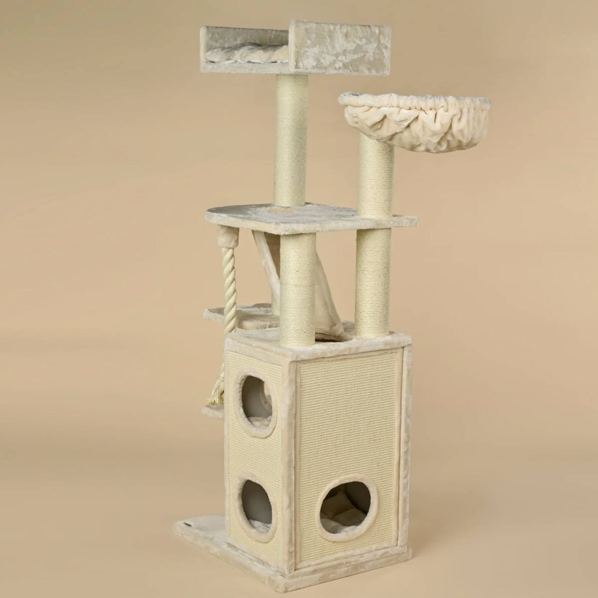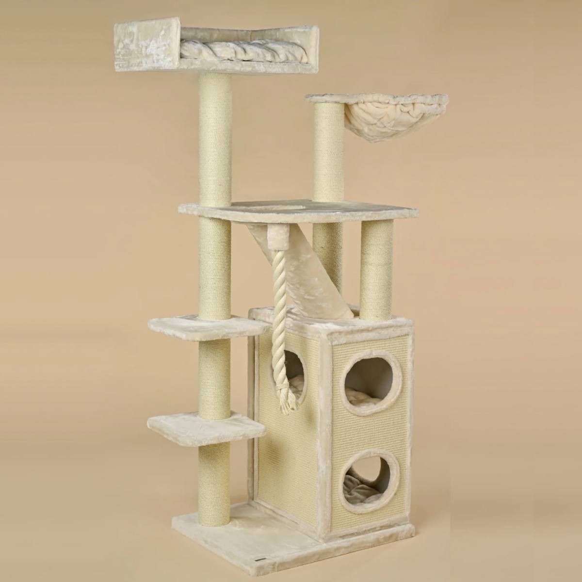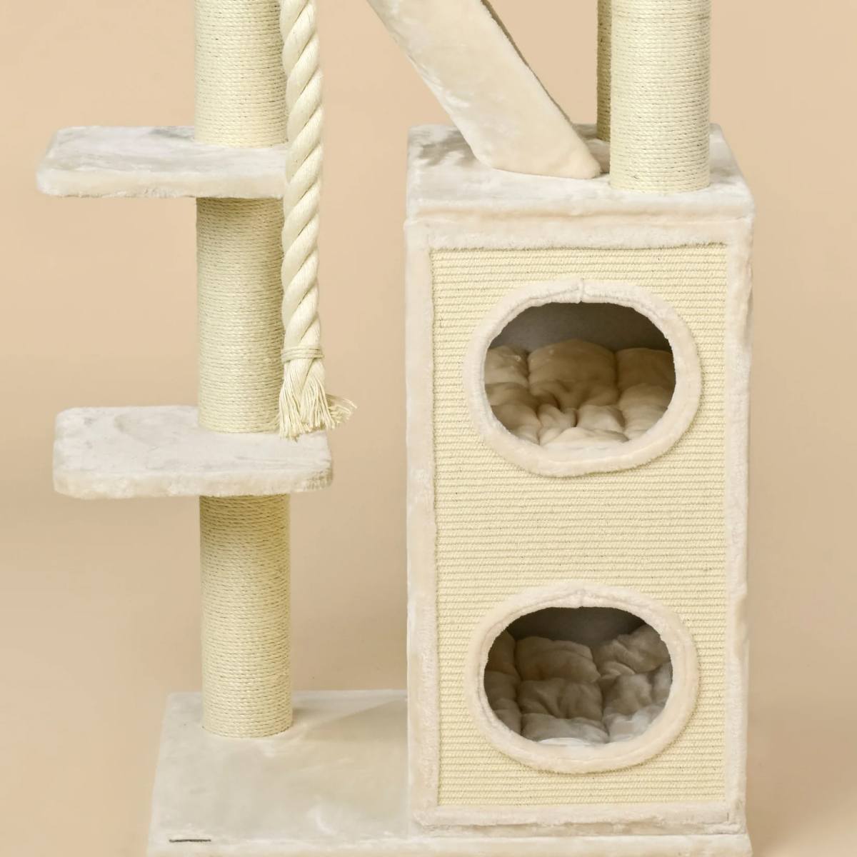 Visos platformos ir aukštai yra aptraukti itin minkštu ir storu 600 g/m² pliušu, todėl katėms čia ypač jauku.